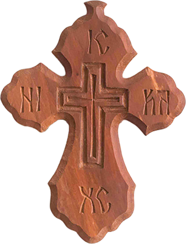 Cruce de perete 41. De dimensiuni medii, 11 x 8 cm. Crucea este incizată și crestată manual din lemn de nuc, prun, cireș, păr, arin, etc. Nuanțele pot să difere față de cele prezentate, în funcție de esență și fibra lemnului, sau culoarea aplicată.